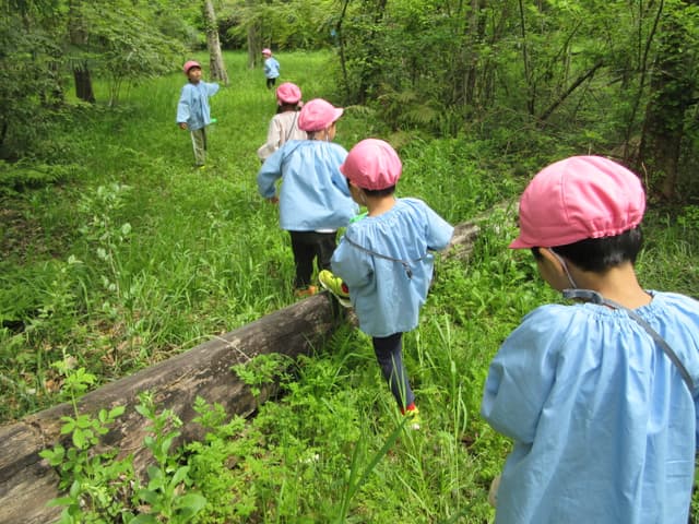 子どもたちはここで、野の花、木の実や昆虫等を見つけ、四季折々の「森のようちえん」を楽しみます。